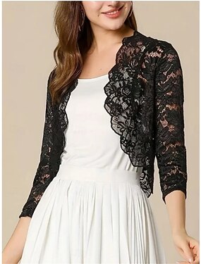 Women's Wrap Elegant 3/4 Length Sleeve Lace Wedding Wraps With Pure Color For Wedding Summer