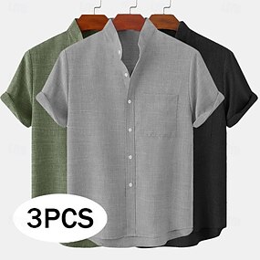 Men's Linen Shirt Summer Shirt Casual Shirt Band Collar Shirt Plain Casual Beach Black+Gray+Green Black+White+Gray black+white+green black+khaki+green Short Sleeve Stand Collar Spring & Summer Summer