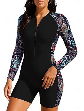Women's Regular Rash Guard Bathing Suit Boyleg UV Sun Protection UPF50+ Ultra Light (UL) Long Sleeve Swimwear Sun Shirt Bodysuit Zip Up Removable Pad Front Zip Surfing Canoeing Beach Water Sports