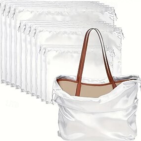 5/10PCS High Quality White Satin Drawstring Bag - Soft and Smooth Dustproof Storage Bag Suitable for Handbags Wigs and Underwear - Machine Washable 15.74x11.81 inches Elegant Gloss Surface Wig