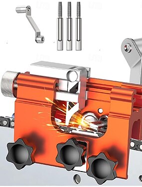 Chainsaw Chain Sharpening Jig, Portable Hand Crank Chain Saw Blade Sharpener Tool Kit, Fits All Kinds of Chain Saws and Electric Saws, with 3 Sharpening Heads