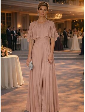 Two Piece A-Line Floor Length Party Dress Cocktail Dress Wedding Guest Dress Mother of the Bride Dress Sleeveless Crew Neck Elegant Minimalist Formal Wedding Guest Chiffon Wrap Included with Ruffles
