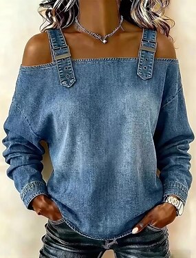 Women's Blouse Backless Solid Color Elegant Vacation Vintage Long Sleeve Off Shoulder Regular Tops Daily Outdoor Streetwear Blue Light Blue Dark khaki fabric Black Dark Blue Summer Spring Fall