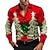 Natal Homens Floco de Neve Blusa de cetim Saia camisa de botão Manga Longa Casual Férias Traje de festa para noite Dia a Dia Verão Primavera Outono Camisas de colarinho Impressão 3D Amarelo Vermelho