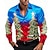 Homens Bandeiras Camisa Social camisa de botão Camisa casual Manga Longa Casual Confortável Férias Rua Feriado Primavera Outono Lapela Bolsos Imprimir Preto Azul