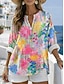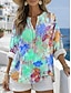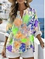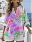 Mulheres Blusa Botões Imprimir Floral Gráfico Diário à moda Básico Meia Manga Decote Quadrado Tops longos Diário Amarelo Verde Bege Azul Claro Verão Primavera