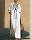 Mulheres Macacão Elegante Côr Sólida Meia Manga Perna larga Decote V Patchwork Bolsos Diário Férias Normal Preto Branco Amarelo Verão