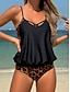 Mulheres Roupa de Banho Tankini 2 partes Cavado roupa de banho Compressão abdominal Cintura Alta Delgado Frente Única Férias Roupa de Praia Leopardo Decote V Sem Manga Fatos de banho