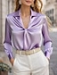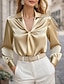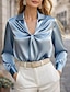 Mulheres Top de cetim Blusa Blusas de Seda Franzido Tecido Elegante Diário à moda Manga Longa Decote V Colarinho de Camisa Tops regulares Diário Preto Branco Azul Céu Roxo Claro Damasco Primavera