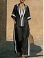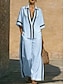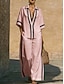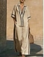 W vestido midi feminino decote em V manga longa caftan leve ajuste solto vestido em A casual boho saindo gráfico geométrico listrado manga longa decote em V laranja vermelho preto amarelo rosa