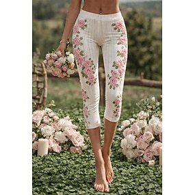 Mulheres Calças Capri chinês Leggings Férias Vintage Roupa de rua Comprimento da panturrilha Cintura Alta Floral Gráfico Estampado Conforto Macio Confortável Com Stretch Diário Ao ar livre Férias