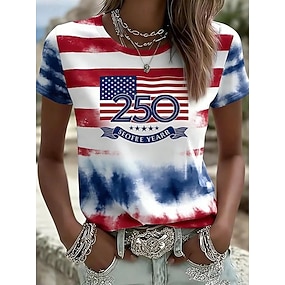 Dia da Independência Americana Mulheres Camiseta Imprimir Gráfico Bandeira Letra Vintage à moda Clássico Manga Curta Gola Redonda Decote Redondo Tops regulares Diário Azul Branco Vermelho / Azul