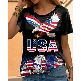 Dia da Independência Americana Mulheres Camiseta Imprimir Floral Gráfico Bandeira à moda Clássico Casual Manga Curta Gola Redonda Decote Redondo Tops regulares Casual Diário Preto Vermelho Verão