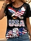 Dia da Independência Camiseta Feminina Americana Aniversário Patriótica Impressão Gráfica Bandeira Vintage Estilosa Clássica Manga Curta Decote V Tops Regulares Dia a Dia Azul Preto Branco Vermelho