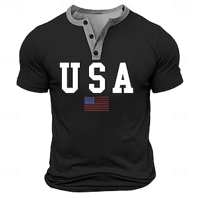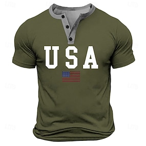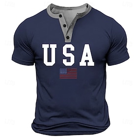 4 de Julho de 2026 250º Dia da Memória Camiseta Masculina Designer Henley Manga Curta Casual ao Ar Livre Esportes Diários