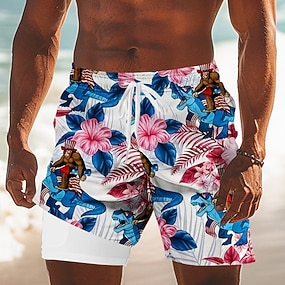 Shorts Masculinos da Bandeira dos EUA do Dia da Independência Shorts Havaianos Masculinos Shorts Casuais Bolsos Laterais Corda de Ajuste Cintura Elástica Respirável Macio Short Casual Diário Férias