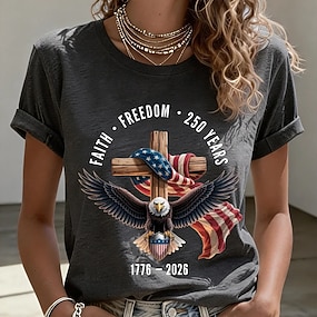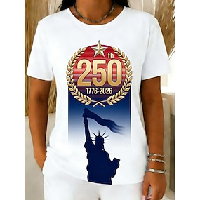 Dia da Independência Americana Mulheres Camiseta T-shirt Imprimir Gráfico à moda Clássico Casual Manga Curta Gola Redonda Decote Redondo Tops regulares Diário Para Noite Final de semana Azul Preto