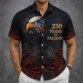 Dia da Independência Homens 4 de julho - 250º aniversário dos EUA Estátua da Liberdade Bandeira dos EUA Camisa Social camisa de verão camisa de botão Manga Curta Moda Casual Feriado Verão Primavera