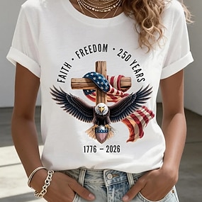 Dia da Independência Americana Mulheres Camiseta T-shirt Imprimir Gráfico à moda Clássico Casual Manga Curta Gola Redonda Tops regulares Diário Para Noite Final de semana Branco Verão Primavera