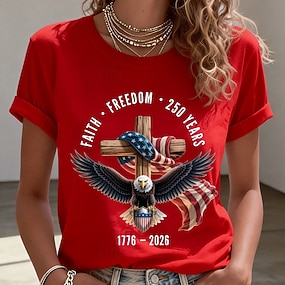 Dia da Independência Americana Mulheres Camiseta Imprimir Gráfico Bandeira à moda Clássico Casual Manga Curta Gola Redonda Decote Redondo Tops regulares Diário Preto Branco Vermelho Verão Primavera