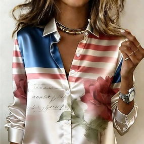 Dia da Independência Americana Mulheres Camiseta T-shirt Imprimir Gráfico Bandeira à moda Clássico Casual Manga Longa Decote V Tops regulares Diário Para Noite Final de semana Vermelho Azul Marinha