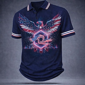 4 de julho de 2026 250º Dia da Independência Homens Bandeira americana Pólo Manga Curta Colarinho polo Lapela Casual Diário Festival Botões Verão Branco Vermelho Azul Marinha