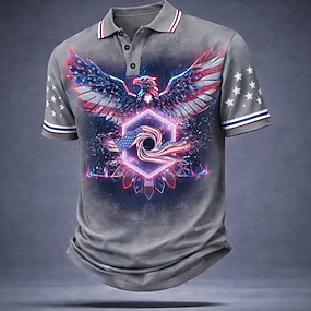 Camisa Patriótica da Bandeira Americana dos EUA Águia do Dia da Independência Masculina Camisa de Verão Botão para Cima Camisa de Manga Curta Casual de Moda Férias de Verão Primavera Gola 3D Impressão