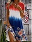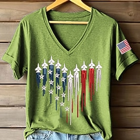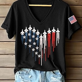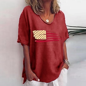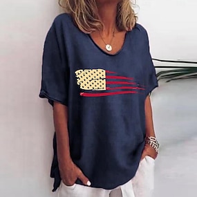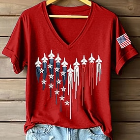 Dia da Independência Aniversário Americano Camiseta Feminina Estampada Gráfica Bandeira Estilosa Clássica Casual Manga Curta Decote em V Tops Regulares Diários Azul Preto Vermelho Vermelho Azul