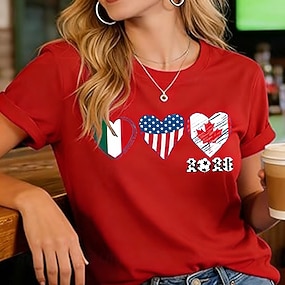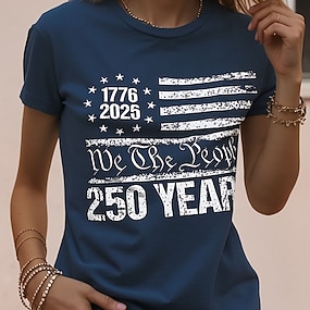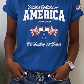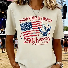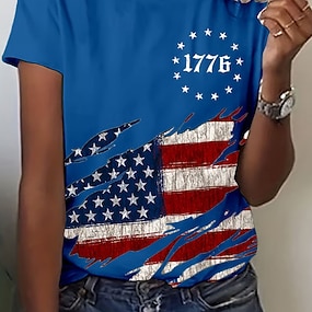 Dia da Independência Aniversário Americano Patriótico Camiseta Feminina Estampa Gráfica Bandeira Nacional Vintage Estilosa Clássica Manga Curta Decote Redondo Tamanhos Regulares Diários Fim de Semana