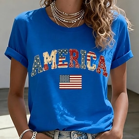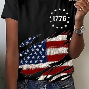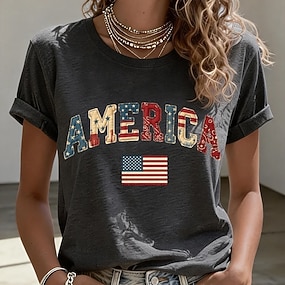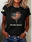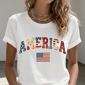 Dia da Independência Americana Mulheres Camiseta Imprimir Gráfico Letra Bandeira americana à moda Clássico Casual Manga Curta Gola Redonda Tops regulares Diário Preto Verão Primavera