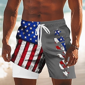 Dia da Independência Homens 4 de julho - 250º aniversário dos EUA Bandeira dos EUA Patriótico Shorts Forrados Shorts de Natação 2 em 1 Calção Justo de Natação Cintura Média Feriado Bolsos laterais