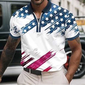 4 de julho de 2026 250º Dia da Independência Homens American US Flag Polo com zíper Manga Curta Aberto para a Lateral Casual / esportivo Desportos e Ar livre Roupa Esportiva Impressão 3D Verão Azul