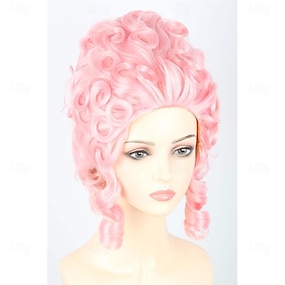 Peruca Histórica Neon Rosa da Rainha Maria Antonieta para Mulheres Estilo Colonial Francês Para Perucas de Carnaval