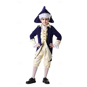 250º Aniversário EUA Rococó Barroco Roupa Manga Comprida George Washington Alexander Hamilton Colonial Fantasia Para Meninos Carnaval Dia da Independência 4 de julho Crianças Casaco Calças Colar