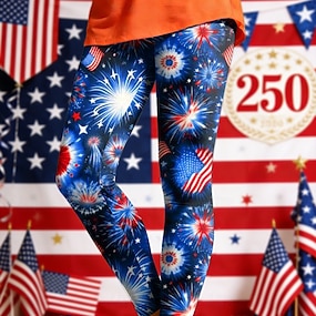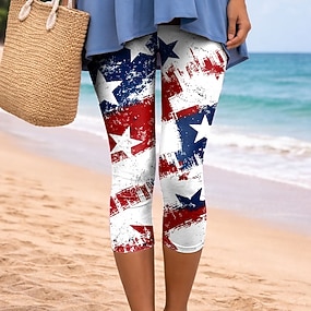 Mulheres chinês Leggings Férias Moda Roupa de rua Capris Cintura AltaPantsDia da Independência Americana Gráfico Bandeira americana Imprimir Conforto Macio Confortável Com Stretch Diário Ao ar livre
