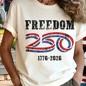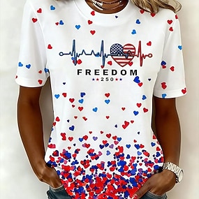 Dia da Independência Dia Patriótica Camiseta Feminina Gráfica Letra Vintage Estilosa Clássica Manga Curta Gola Redonda Tops Regulares Impressão Diária Fim de Semana Azul Preto Branco Rosa Vermelho
