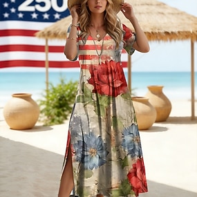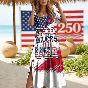 Dia da Independência Americana Mulheres Vestido midi Vestido de turno Vestidos Para o Verão Vestido T shirt Férias Casual Feriado Normal Gráfico Bandeira americana Manga Curta Decote V Azul Vermelho