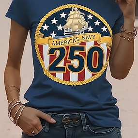 Dia da Independência Aniversário Americano Camiseta Feminina Estampada Gráfica Bandeira Estilosa Clássica Casual Manga Curta Gola Careca Gola Redonda Tops Regulares Diário Azul Preto Branco Vermelho