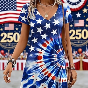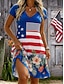 Dia da Independência Americana Mulheres Minivestido Vestido T shirt Vestido A Line Casual Diário Normal Gráfico Bandeira americana Manga Curta Decote V Azul Vermelho Verão Primavera