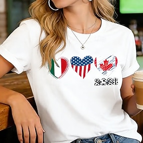 Mulheres Camiseta Imprimir Gráfico Time de futebol à moda Clássico Casual Manga Curta Decote V Tops regulares Diário Azul Preto Branco Vermelho Verde Verão Primavera