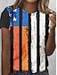 Dia da Independência Camiseta Patriótica Feminina Impressão Gráfica Bandeira Estilosa Clássica Casual Manga Curta Decote Redondo Tops Regulares Diário Azul Preto Laranja Verão Primavera