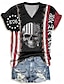 Camiseta Feminina Patriótica do Dia da Independência Gráfica Impressão Bandeira Vintage Estilosa Clássica Manga Curta Gola em V Tops Regulares Diários Preta Verão Primavera