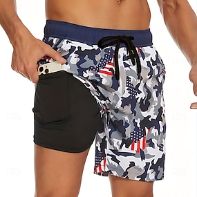 Dia da Independência Homens 4 de julho - 250º aniversário dos EUA Bandeira dos EUA Patriótico Shorts Forrados Shorts de Natação 2 em 1 Calção Justo de Natação Cintura Média Feriado Bolsos laterais