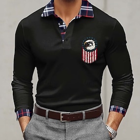 4 de julho de 2026 250º Homens Bandeira americana veteranos Camisas Polo Camisas Polos de Golfe Manga Longa Camisas polo Colarinho Férias Traje de festa para noite Dia a Dia Zíper Impressão 3D Outono