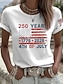 Dia da Independência Aniversário Americano Camiseta Feminina Estampada Gráfica Letra Bandeira Americana Estilosa Clássica Casual Manga Curta Decote Redondo Tops Regulares Diários Branco Vermelho Bege