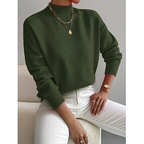 Mulheres Suéter Pulôver Elegante Vintage Moda Côr Sólida Estriado Gola Alta Tricotado Manga Longa Tops regulares Tricotar Escola Ao ar livre Casa Rosa Verde Tropa Primavera Outono