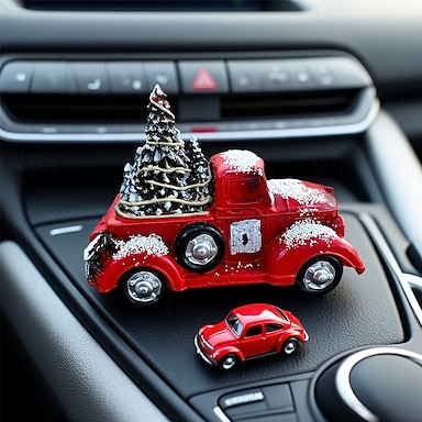 1 peça charmosa decoração de carrinho de Natal vermelho em resina - perfeita para decoração de carro e escritório em casa, presente ideal para amigos e familiares, decoração de Natal, árvore de Natal,