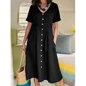 Mulheres Vestido midi Linho de algodão sintético Vestido casual Elegante Moda Moderno Diário Ao ar livre Férias Ajuste Largo Tecido Manga Curta Gola Redonda Preto Branco Vermelho Azul Marinha Verão
