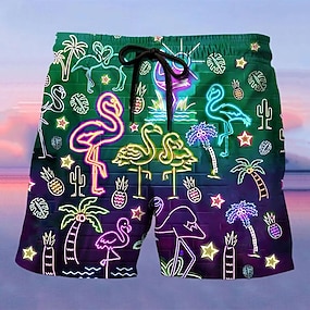 Homens Flamingo Pássaro Shorts Forrados Shorts de Natação 2 em 1 Shorts de Natação Cintura Média Havaiana Férias Feriado Roupa de Praia Bolsos laterais Com forro de compressão Cintura elástica com