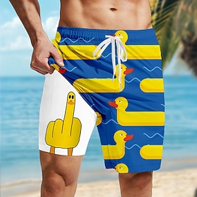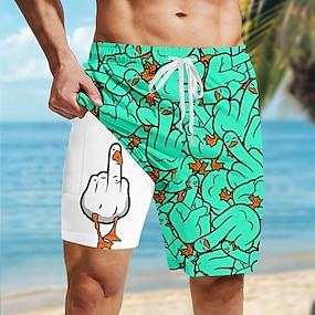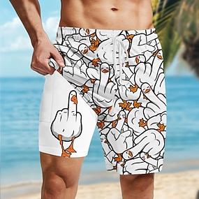 Homens Engraçado Pato Dedo do meio Shorts Forrados Shorts de Natação 2 em 1 Shorts de Natação Cintura Média Havaiana férias na praia Bolsos laterais Com forro de compressão Cintura elástica com cordão